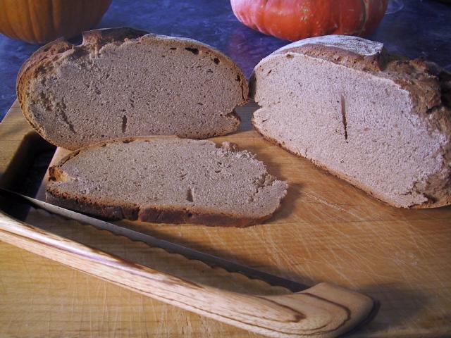 aroma, a lot of wheat, and a hint of rye in its aroma. The crust was nicely browned, fairly thick, flexible, and chewy. It had nice caramel notes and a good wheat taste. The crumb was fairly tight, but still open. The loaf had a good rise, and some oven spring. The crumbs taste was mild, with a hint of sour, a good wheaty taste, and some rye present. A very nice, rich, bread.