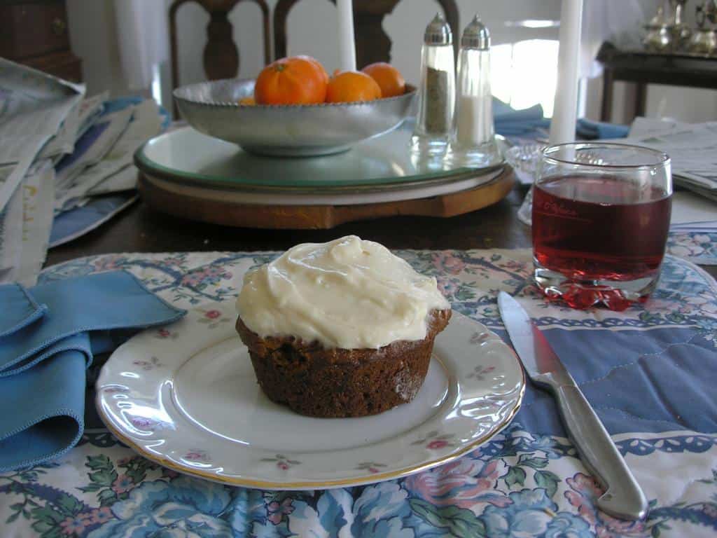 If this recipe were just a way of dealing with leftover starter, it would be worth including here. But I don't do things like that. Each recipe on Sourdoughhome.com has to stand on its own merits. And... let me tell you, this is a great recipe! The cupcake is dense, moist, spicy and very, very rich. Even without the frosting. You might be tempted to leave off the icing, but please don't! Face it, this isn't a "healthy" recipe, and leaving off the icing won't make it "healthy." It's an indulgence. So, INDULGE!